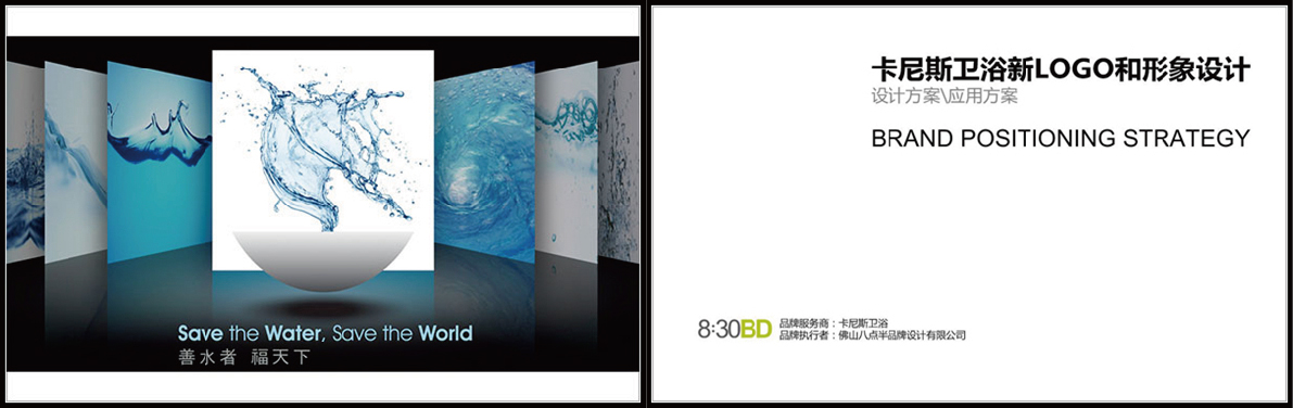 八点半品牌设计针对卡尼斯卫浴发展需求和品牌提升,根据“善水者,福天下”的品牌定位,品牌形象需要简洁大气,有较强的包容性和时代感,风格相对中性,以适应品牌未来发展多元化推广思路。