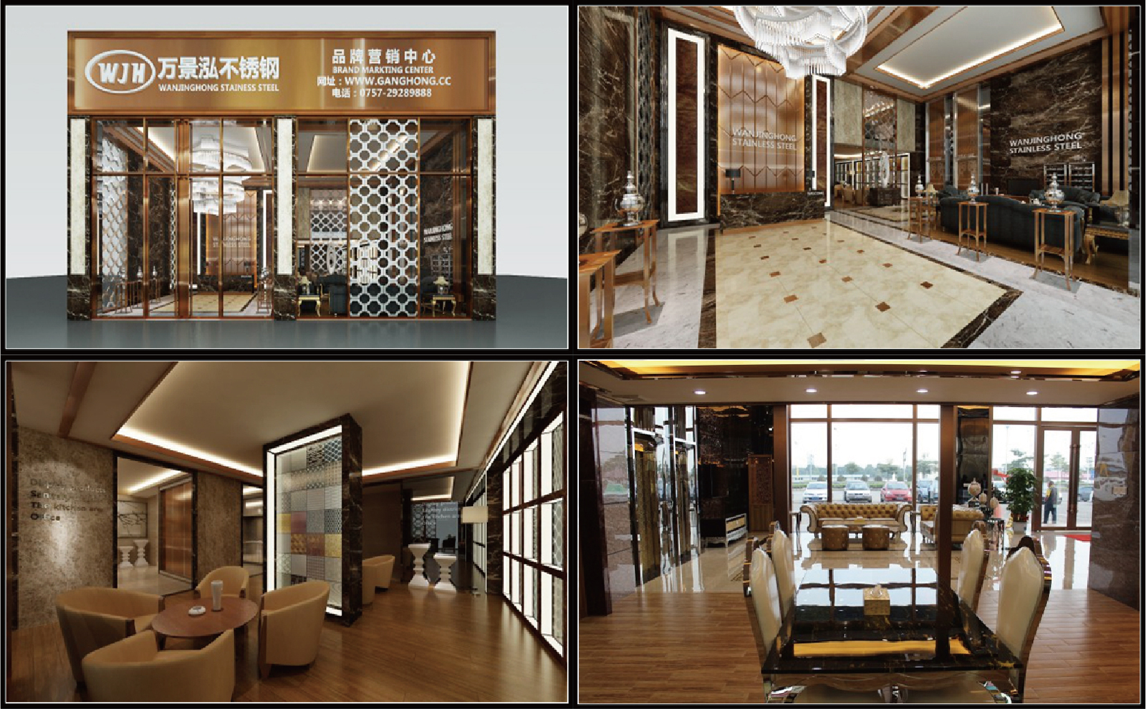 走进展厅,你仿佛置身于一个高端奢华的场所,那金碧辉煌的感觉却是如此真实。空间设计之处透出不锈钢之美态,展现不同格调的不锈钢产品风情,尽显“钢 ▪ 融于家”的时尚终端消费之家形象。
