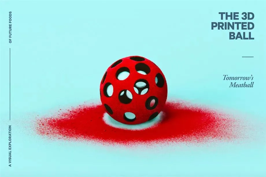 虽然宜家的定位是家居,但在餐厅的经营上也毫不逊色,所以 The Farm 实验室的第一个项目,就拿宜家的人气美食「肉丸」来改造——这 8 个肉丸,每一个都很「创新」,都是科技和环保理念与食品的结合。
