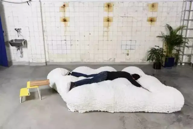 用充气球和白毛毯制成的云朵形状的大沙发 ▼