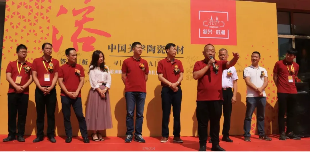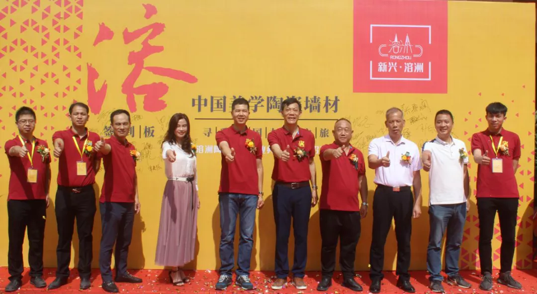 出席本次活动的领导和嘉宾有,新兴溶洲建筑陶瓷二厂总经理罗明坚、销售部总经理霍志成、销售部副总经理陈炳灿、新品部总监潘耀雄、新品组总监罗嘉盛、新材料组总监邓坚勇,以及特邀嘉宾佛山市捌点半品牌设计有限公司总经理韩燕伟、汕头市盛丰易成建筑材料有限公司总经理林浩龙、中山西关贸易有限公司总经理张碧娴、樵顺房地产开发有限公司朗壕陶瓷商行总经理何庆朗。