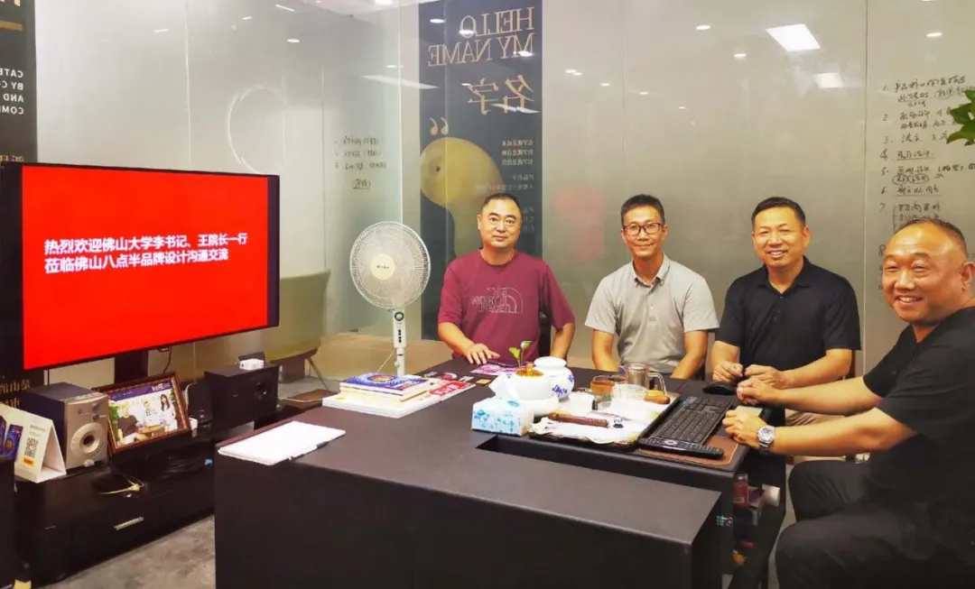 9月17日,佛山科学技术学院粤台人工智能学院党委书记李炳亮、副院长王东博士,以及佛山科学技术学院设计学院画家张伟博士莅临佛山八点半品牌机构沟通交流。